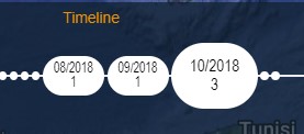 If the 2018 balloon is clicked, the user is then allowed to see in which month the events happened: in this example, 1 occurred in August, 1 in September, and 3 in October
