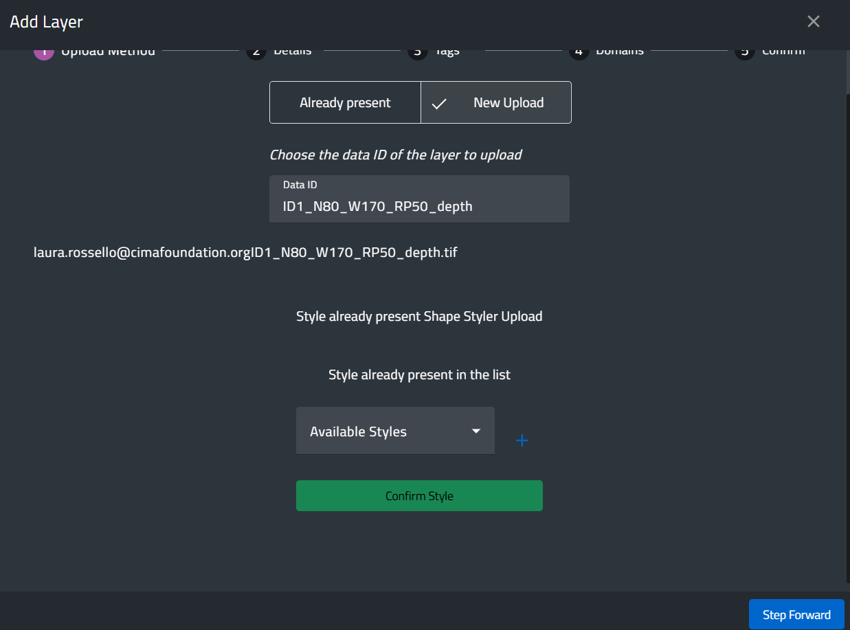 The next step allows users to either select an existing style for the layer or upload a new style in SLD format.