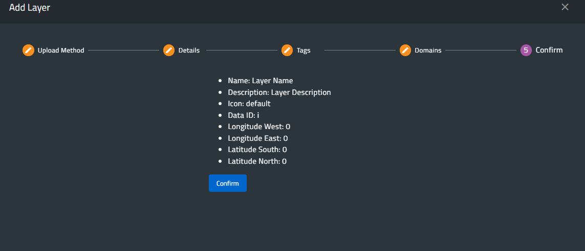 Finally, in the last step, the details are summarized. By pressing Confirm, the layer will be added to the layer list in the static menu.