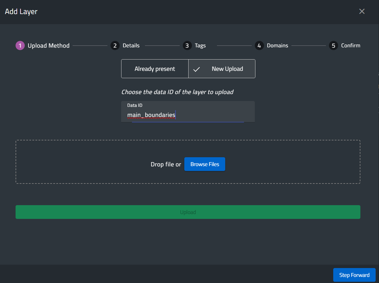 The layers will appear in the window, and by pressing “Upload” they will be uploaded into the system.