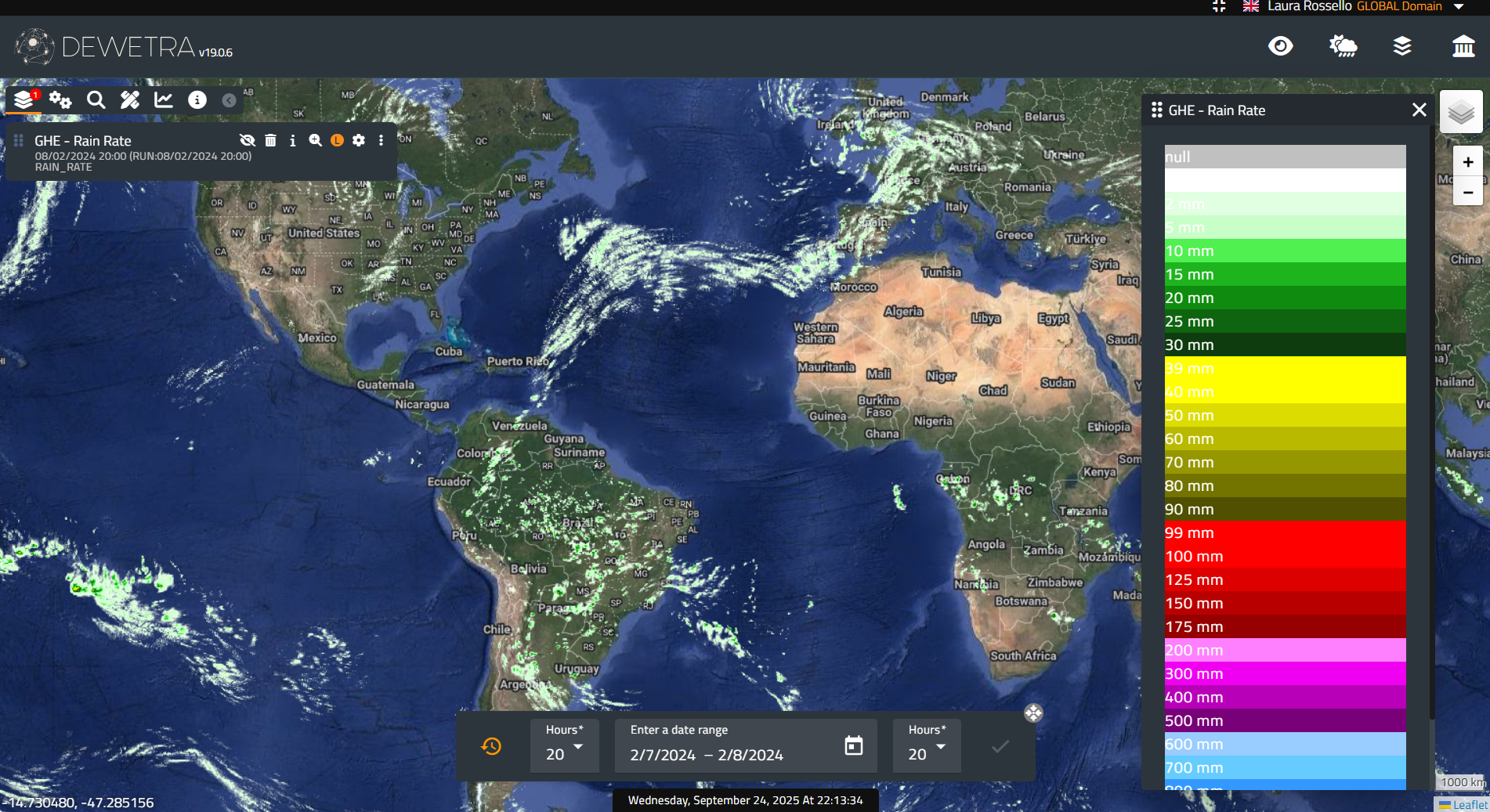 The HE algorithm uses infrared (IR) brightness temperatures to identify regions of rainfall and retrieve rainfall rate, while using National Centers for Environmental Prediction (NCEP) Global Forecast System (GFS) model fields to account for the effects of moisture availability, evaporation, orographic modulation, and thermodynamic profile effects. Estimates of rainfall from satellites can provide critical rainfall information in regions where data from gauges or radar are unavailable or unreliable, such as over oceans or sparsely populated regions. Recently the HE has been extended to the entire globe equator-ward of 60 degrees to meet user community's need for support of global flash flood guidance efforts. The HE rainfall rate estimates are produced routinely every 15 minutes for the continental United States using the data from NOAA's Geostationary Operational Environmental Satellites (GOES), and also for the rest of the world using available geostationary data over Europe, Africa, and western Asia (METEOSAT), and eastern Asia (MTSAT). The global rainfall composite is then generated from those estimates from multiple satellites and updated every 30 minutes. The operational global HE products available include instantaneous rain rates and 1-hour, 3-hour, 6-hour, 24-hour and multi-day precipitation accumulations. More info at: GHE documentation on line |