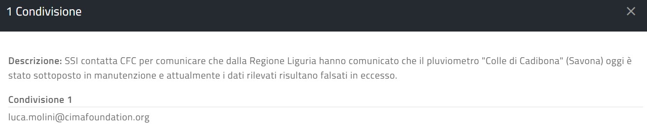 Cliccando sulla spunta il sistema mostrerà la modalità di condivisione utilizzate e i destinatari.