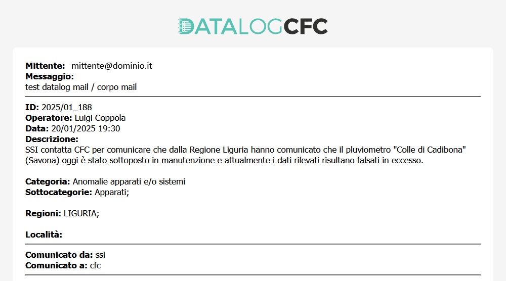 - I destinatari riceveranno una mail dal mittente datalog@datalog.org