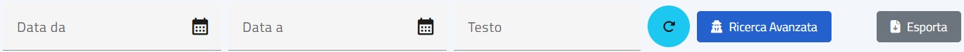 E' inoltre possibile utilizzare simultaneamente i due tipi di filtri ("Testo" e "Data da/Data a"), ricercando dunque una specifica chiave testuale all'interno di una fissata finestra temporale.