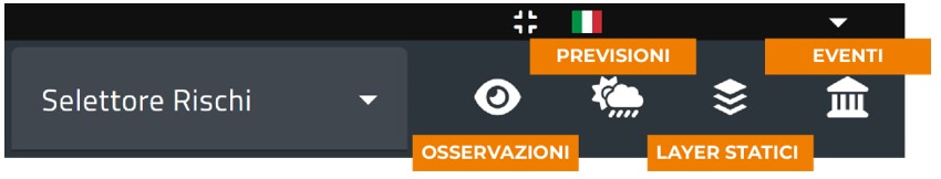 Premendo il pulsante Legenda, l'utente farà comparire nell'area mappa la colour palette e i valori associati per ogni layer. Per una trattazione di dettaglio delle palette utilizzate, si rimanda l'utente alle schede di dettaglio delle sezioni Osservazioni e Previsioni.