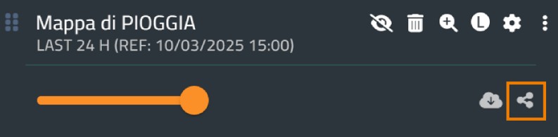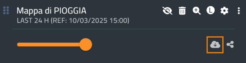 Premendo il pulsante Scarica, l'utente avrà la possibilità di scaricare in locale la mappa visualizzata: lo scaricamento avverrà in formato geotiff per i layer di tipo raster alla risoluzione nativa e come file vettoriale in caso il layer venga aggregato a un qualunque livello spaziale (comunale, provinciale, regionale, zona d'allerta, zona di vigilanza meteoclimatica, bacino idrografico)