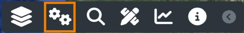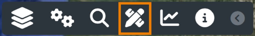 L'area Funzionalità Accessorie dell'applicativo è posizionata in alto a sinistra e raggruppa, in ordine da sinistra a destra, gli strumenti Lista Livelli, Altri Strumenti, Ricerca Magica, Misurazione, Serie Temporali, Info Livello