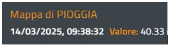 Nell’esempio in figura, l’applicazione della modalità Info al layer Mappa di pioggia: la finestra pop-up si apre nella parte in alto a destra dello schermo informando circa il valore del layer selezionato in quel punto.
