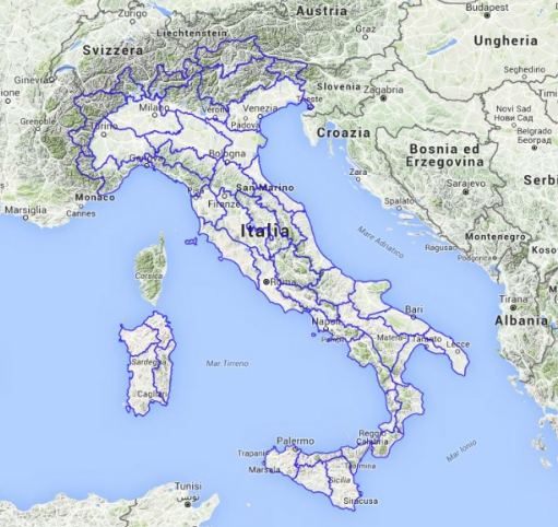 - Estremo superiore: 47.091920 - Estremo sinistro: 6.626861 - Estremo inferiore: 36.643982 - Estremo destro: 18.520568 |
