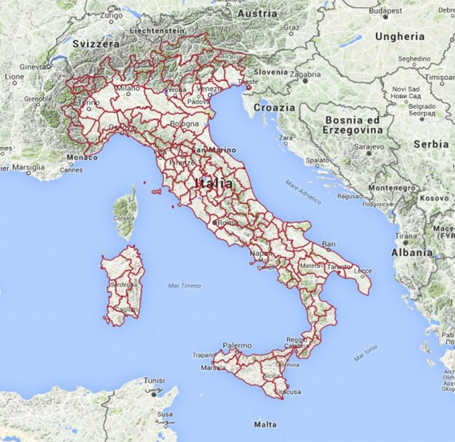 - Estremo superiore: 47.091920 - Estremo sinistro: 6.626861 - Estremo inferiore: 35.491823 - Estremo destro: 18.520568 |