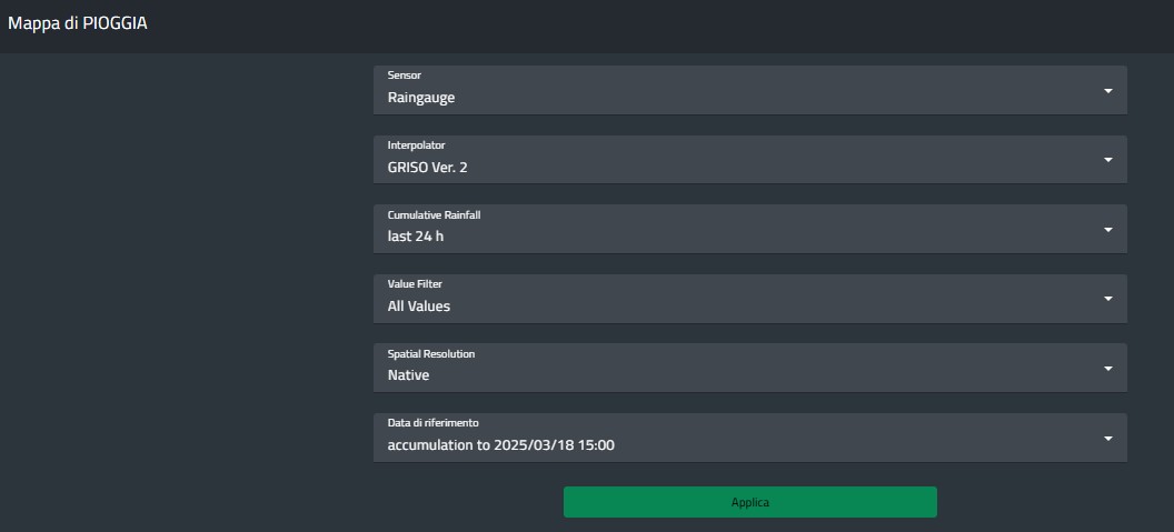 Cliccando sul nome dello strato informativo il sistema apre il menu proprietà del layer attraverso il quale l'utente potrà modificare, ad esempio, l'istante temporale di riferimento, l'aggregazione spazio/temporale, la data di run (se su tatta di un modello di previsione) et c.