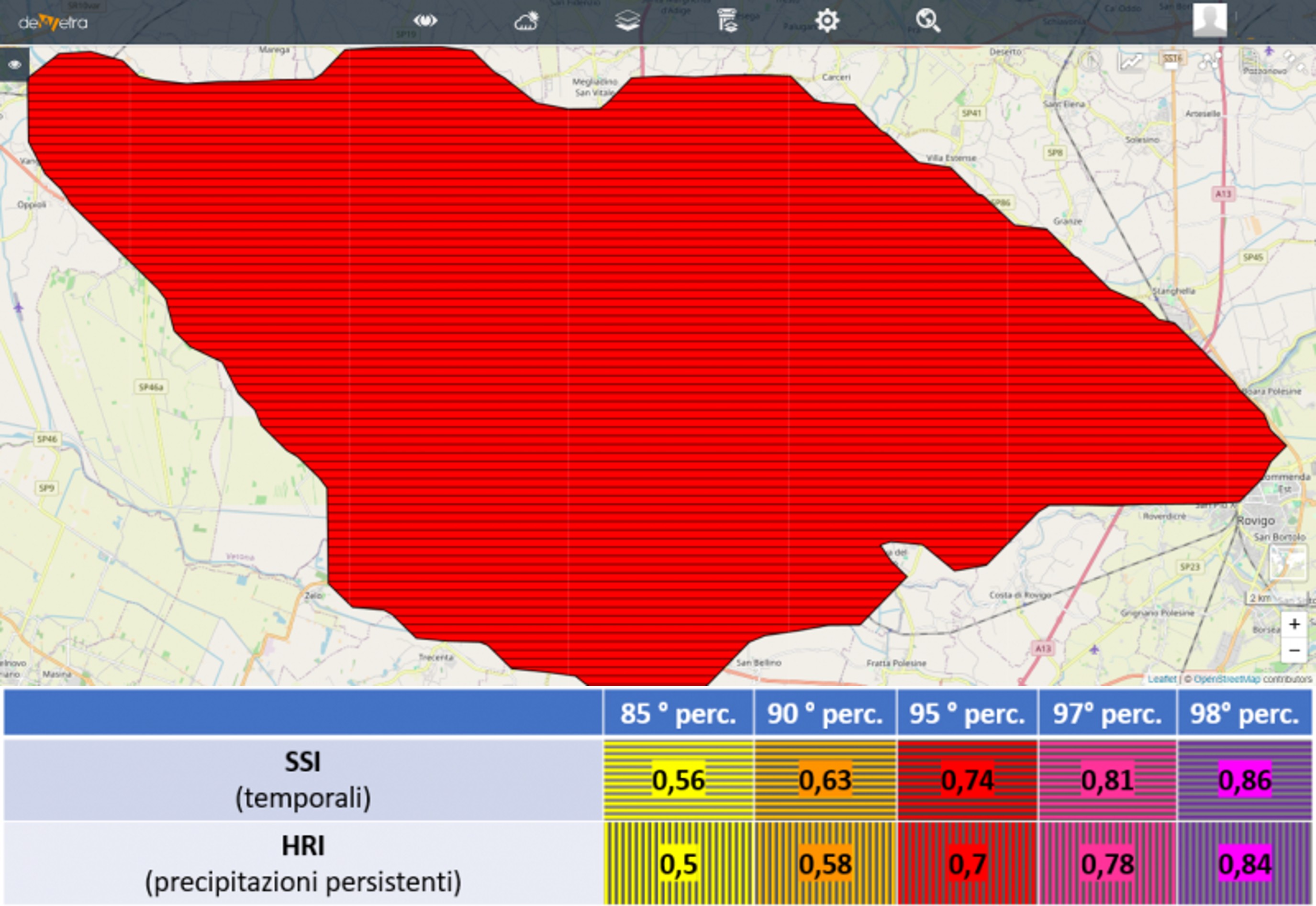 Il prodotto HRTa è l’ultima fase dell’analisi dei fenomeni violenti. Si tratta del prodotto che determina l’area o territorio potenzialmente in allarme, tramite la visualizzazione dell'inviluppo delle aree coperte dalle strutture nei successivi 30 minuti. Per informazioni di maggior dettaglio, si suggerisce di consultare l'approfondimento scaricabile cliccando il seguente link: Heavy Rain Tracking |