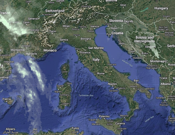 Il prodotto SATMWIR SRI (H60B) “Precipitation rate at ground by GEO/IR supported by LEO/MW” fornisce mappe di precipitazione istantanea generate da immagini ad infrarossi (IR) calibrate utilizzando osservazioni di precipitazione alle Micro Onde (MW). Tali immagini sono "calibrate" attraverso misure di precipitazione ottenute da immagini MW in orbite eliosincrone. L’area di copertura è il campo Meteosat che include la zona H-SAF delimitata a 60° N, la risoluzione temporale è di 15 minuti e la risoluzione spaziale media in Europa è di 8 km (controllata dalla dimensione del pixel IR). I valori di precipitazione sono forniti in punti griglia aventi la proiezione Meteosat. Il prodotto H60B ricevuto attraverso EUMETCast viene proiettato su griglia regolato per il dominio europeo con risoluzione spaziale di 0.066° e pubblicato. |