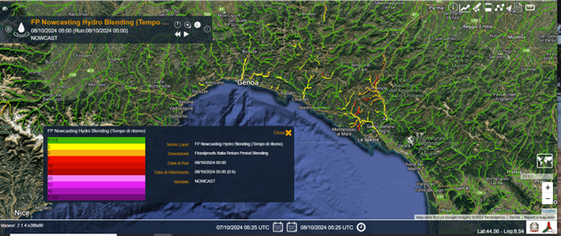 | Nome layer | FloodPROOFs Italia Nowcasting Hydro Blending (tempo di ritorno) |