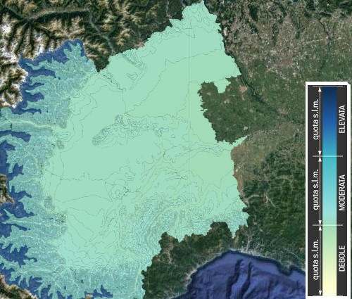 La mappa di quota neve viene generata tramite l'applicativo QPF/QSF e determina la campitura di tutto il territorio nazionale (le cui quote sono derivate dal modello digitale del terreno di riferimento a 20m, fonte Repertorio Nazionale Dati Territoriali) sulla base delle valutazioni di CFC-Meteo recepite dal funzionario in turno che le inserisce. |