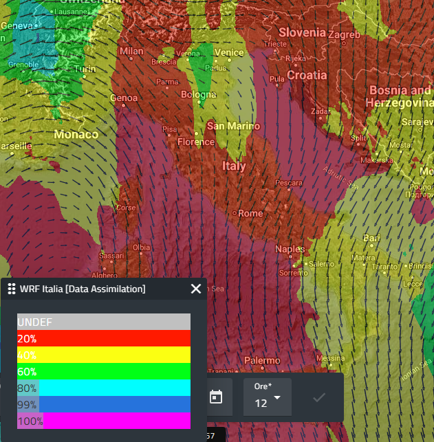 | Cumulate disponibili | 6, 12, 24, 48 ore (per precipitazione totale) |