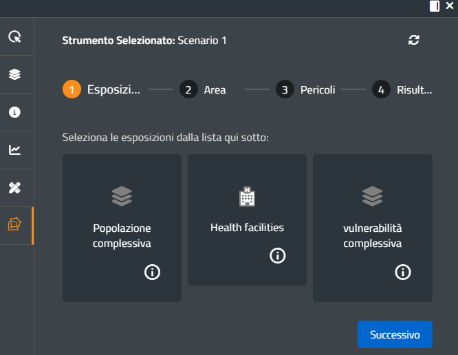 Premendo il pulsante Scenario1, il sistema chiederà all'utente di selezionare le categorie di esposti sulla quale effettuare l'analisi