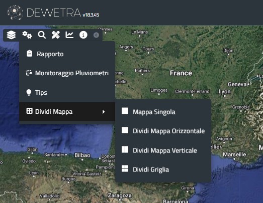 Di default i layer verranno caricati sulla schermata superiore (se 2 mappe orizzontali), sinistra (se 2 mappe affiancate) ovvero superiore sinistra (4 mappe).