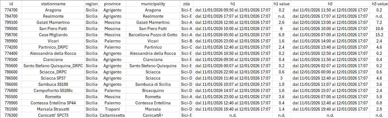 I dati, sia nella loro completezza che filtrati secondo le necessità imposte dall'utente, potrnno poi venire scarciate in formato .csv tramite il pulsante Scarica .csv