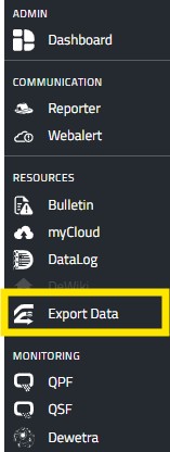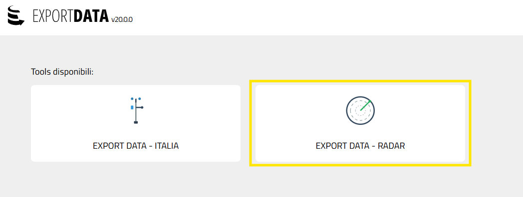 Una volta effettuato l'accesso, l'utente dovrà selezionare il box a sinistra Export Data - Radar