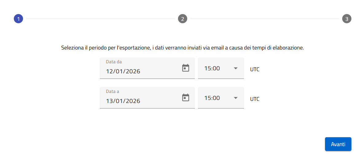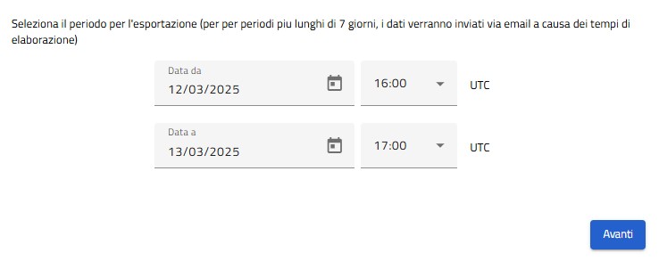 Le query avverranno in maniera asincrona, indipendentemente dalla lunghezza dell'intervallo temporale impostato: il sistema elaborerà la richiesta in tempo differito e provvederà ad inviare i dati attraverso la posta elettronica entro 24 ore.