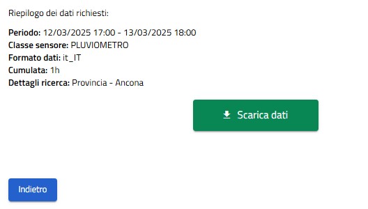 In caso positivo, la pressione del pulsante Scarica dati determinerà l'avvio della procedura di richiesta dei dati al database radar, la composizione del file .zip contenente i dati desiderati. Entro le successive 24 ore l'utente riceverà un'email che riporterà il link da cui scaricare il file e le variabili richieste.