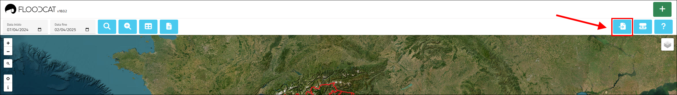 La funzione di importazione massiva è accessibile premendo il pulsante Floodcat import tool evidenziato nella figura seguente: