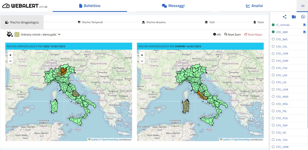 WebAlert è l'applicativo della piattaforma che consente sia la compilazione del bollettino di criticità idrogeologica idraulica e temporali agli utenti regionali dei Centri Funzionali Decentrati (CFD) per quanto concerne il territorio di competenza che le operazioni di omogeneizzazione, validazione e pubblicazione che a livello nazionale spettano al Centro Funzionale Centrale (CFC).