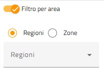 una o più Regioni/Province autonome d'interesse e al loro interno una o più zone d'allerta, tramite il menu a tendina che che si attiva spostando il toggle Filtro per area su posizione attiva