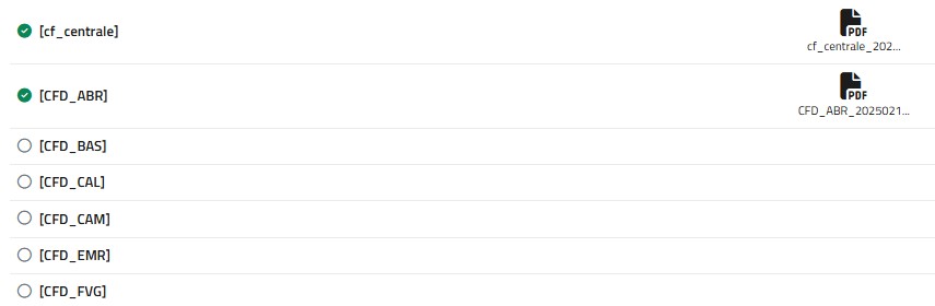 Una volta selezionata la data d'interesse, il sistema aggionrnerà la schermata mostrando tutti i bollettini prodotti dagli utenti CFD e CFC per la data impostata, consentendo dunque la consultazione di tutti i bollettini di criticità disponibili in archivio.