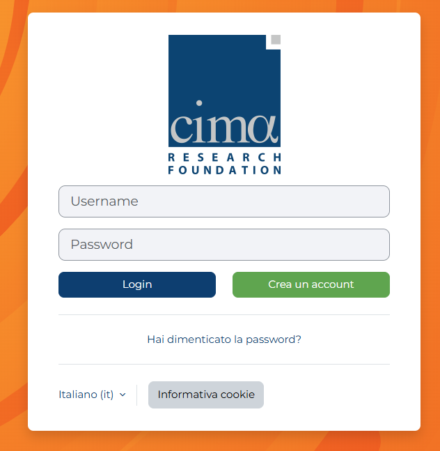 Una volta completata la registrazione, entro due giorni lavorativi si riceverà una mail automatica contenente le credenziali di accesso alla piattaforma formativa edu.cimafoundation.org (in caso di mancata ricezione controllare anche la casella di posta indesiderata prima di contattare l’assistenza)
